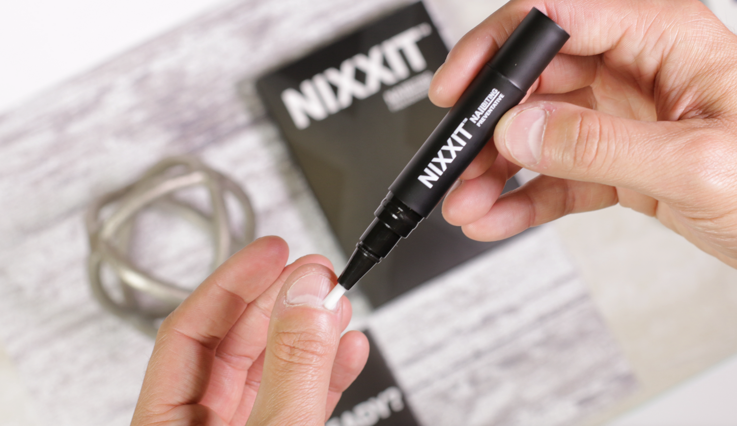 Nope. NIXXIT is completely invisible when applied and doesn’t leave any glossy finish. It dries quickly and has no nail polish remover scent — just a bitter taste designed to stop the habit without embarrassment.